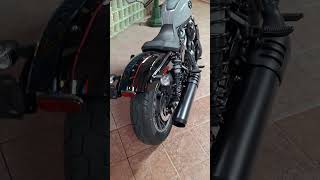 - Rear suspension is dual outboard, direct-acting (no linkage) emulsion technology shock absorbers with coil springs and a threaded collar for pre-load adjustment.